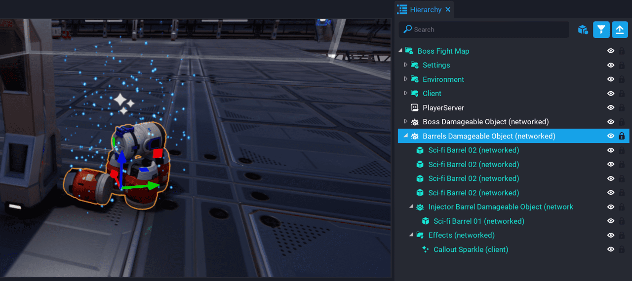 Add a Damageable Object to the Hierarchy. You can find this in Core Content under Gameplay Objects. Name the Damageable Object Boss Damageable Object.