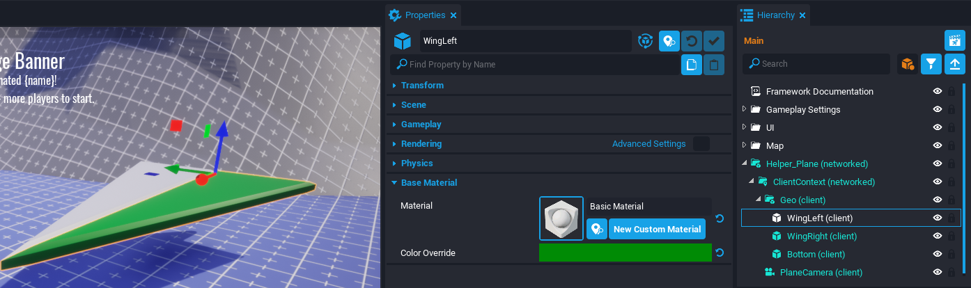 The airplane template should now be modified in game and is ready to test. Make sure to enable Multiplayer Preview Mode before pressing Play.