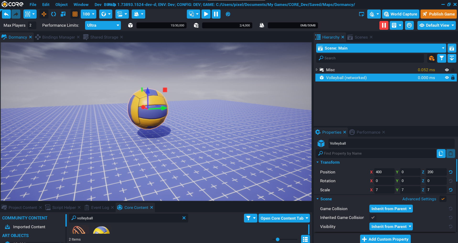 1. In Core Content search for Volleyball to find the object Ball - Volleyball 01.