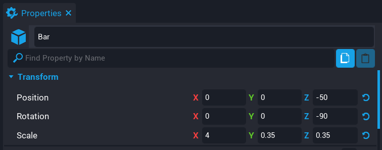 4, Y0.35, Z0.35. - Duplicate the bar and rename it to