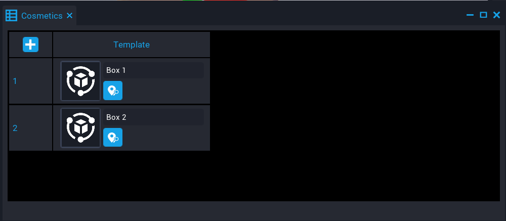 When you have created your templates for the boxes, they need to be added to the Cosmetics data table.
