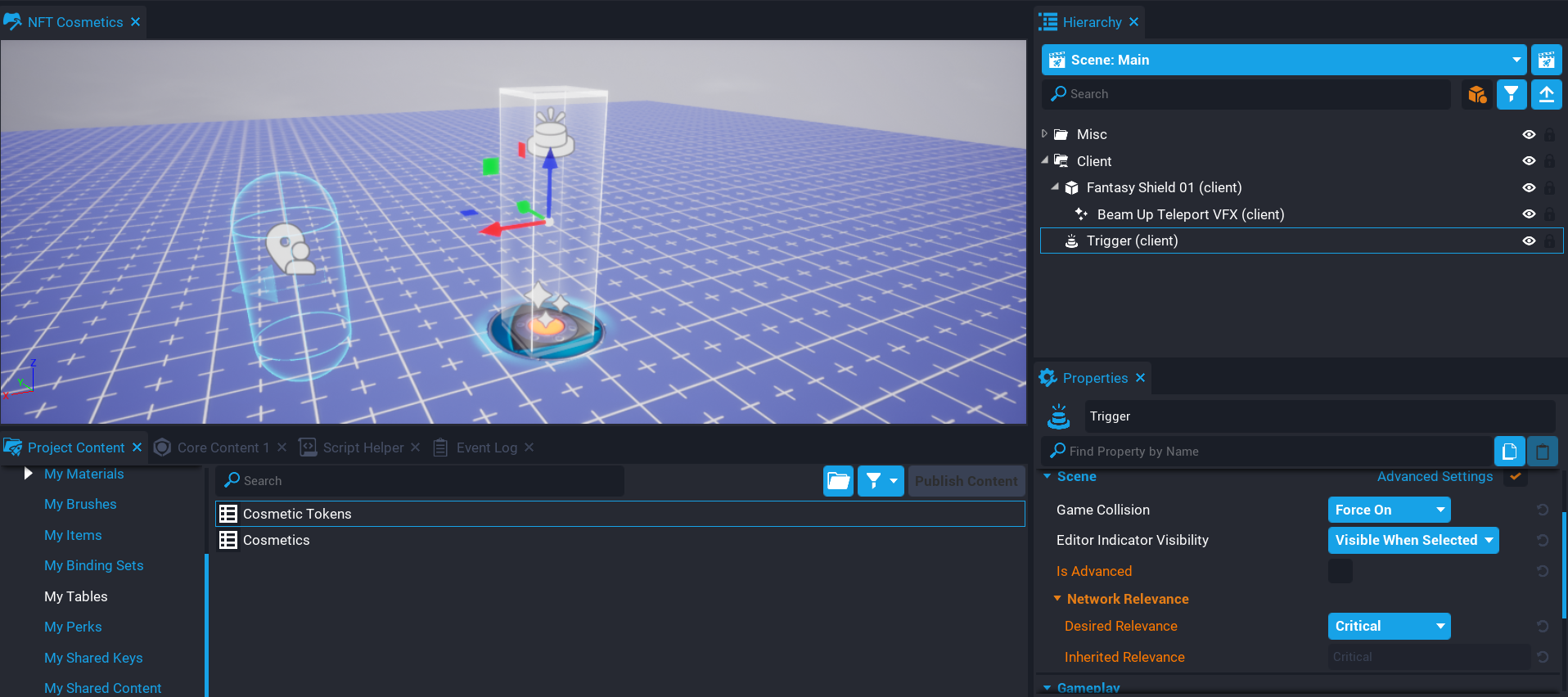 In this tutorial, you will learn how to use NFTs (Non-fungible Tokens) as cosmetics. You will create a system that allows players to walk into a trigger and get a random cosmetic attached to them. You will be using an NFT cosmetics collection that has already been created, however, creating your own can also be done and used for this tutorial.