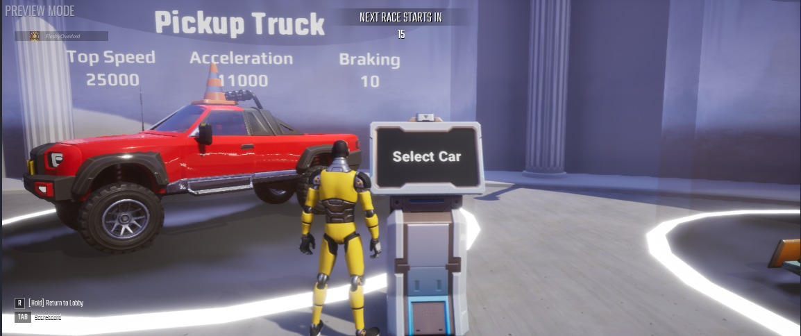In this section you will modify the Pickup Truck from the Racing Framework. The modifications you will make to the Pickup Truck can also be made to any other cars in the Racing Framework.