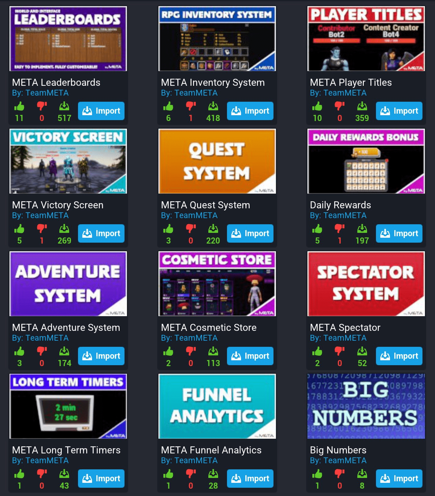 • Team META has created a collection of useful creator tools, from leaderboards to inventory systems to victory screens.