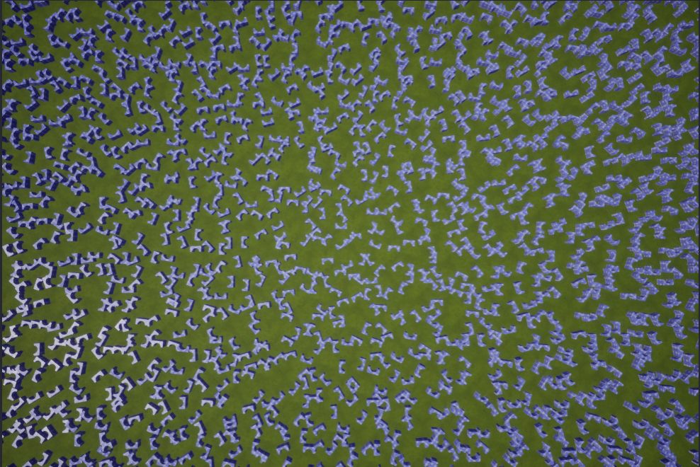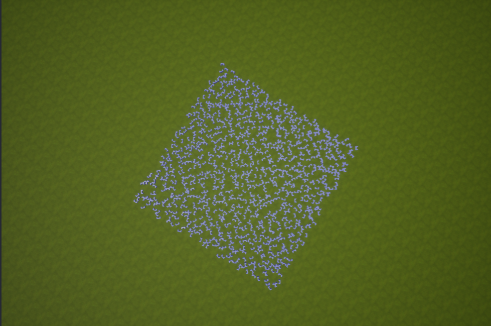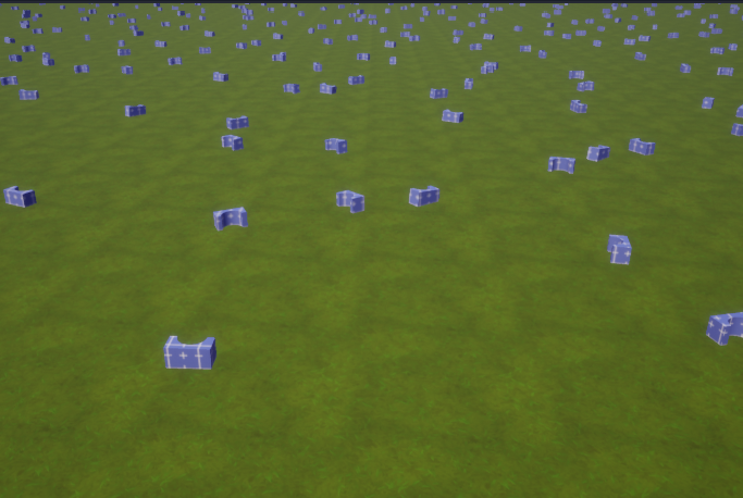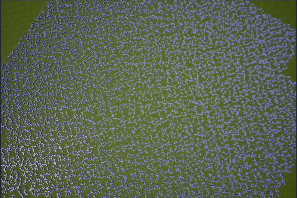The Distance Between Instances property controls the density of placement for one type of foliage. The higher the Distance Between Instances, the more space there will be between instances of that foliage.
