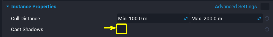 The Cast Shadows property determines if the foliage should cast shadows. Enabling this property will increase the time required to render all of the foliage. A comparison between disabling Cast Shadows and enabling Cast Shadows can be seen below.