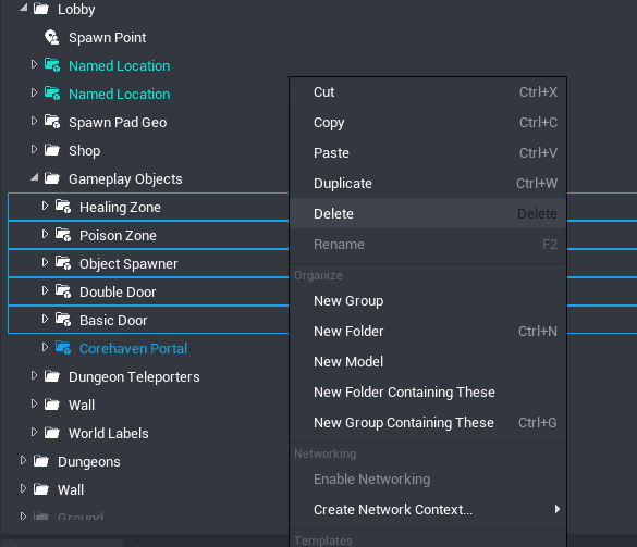 - Open the Gameplay Objects folder. Delete each folder inside EXCEPT the Corehaven Portal.