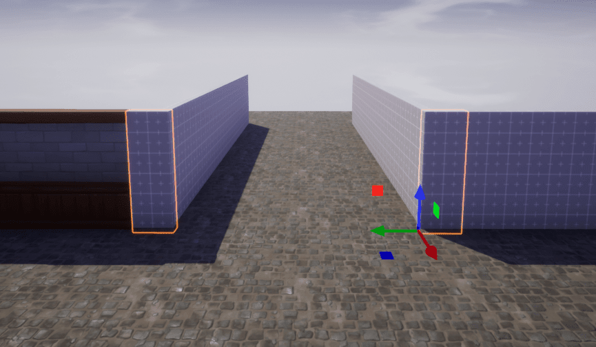 To change the object that is used by the walls, select several walls that are currently using the same mesh: Whitebox Wall 01. You will likely want to choose a different piece for half walls, so avoid the corner walls toward the Corehaven portal.